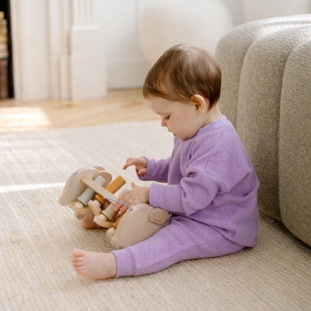 Our Thermal Knit fabric is knit locally and ethically in Toronto, exclusively for Blueberri, using custom non-toxic dye colors.